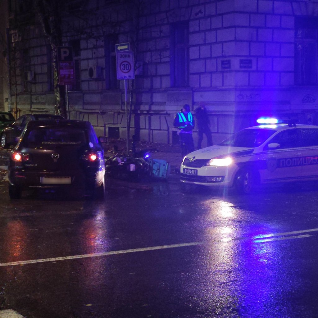 NESREĆA U CENTRU BEOGRADA: Sudarili se auto i motor za dostavu hrane, policija na terenu (FOTO)