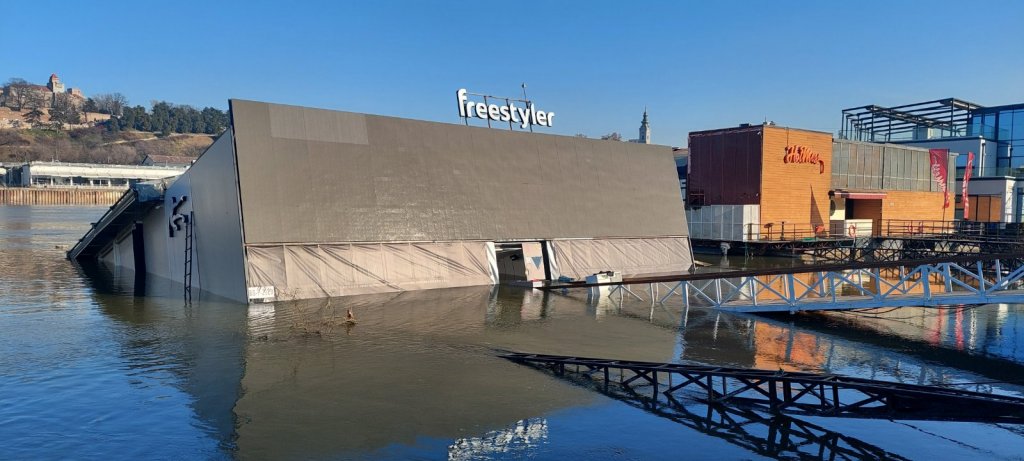 OVAKO TRENUTNO IZGLEDA FRISTAJLER: Pukao mostić koji splav spaja sa obalom (FOTO/VIDEO)