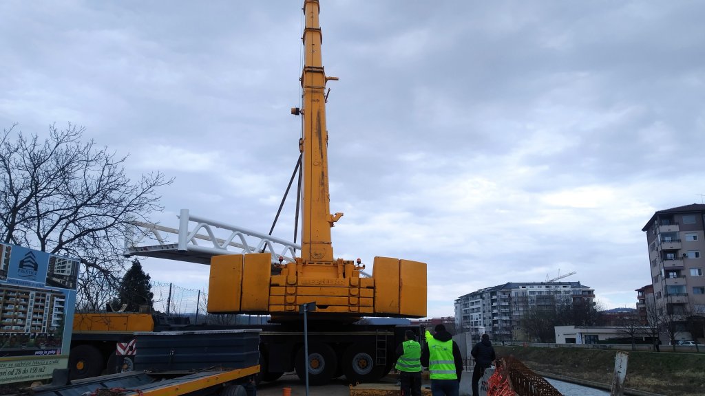 KRAN SPUSTIO ČELIČNU GRDOSIJU: U Paraćinu danas montiran prvi od četiri pešačka mosta (FOTO/VIDEO)