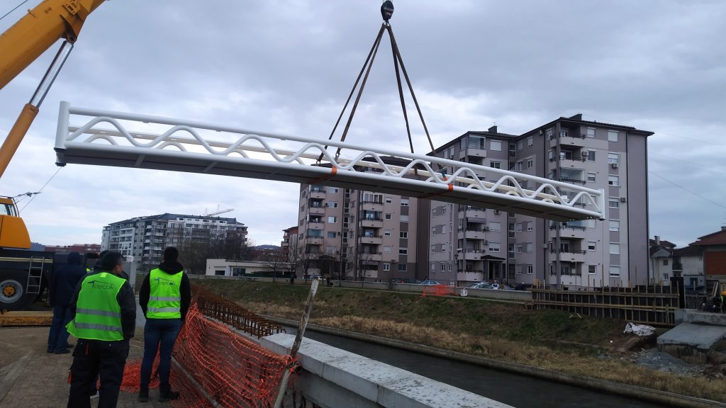 KRAN SPUSTIO ČELIČNU GRDOSIJU: U Paraćinu danas montiran prvi od četiri pešačka mosta (FOTO/VIDEO)