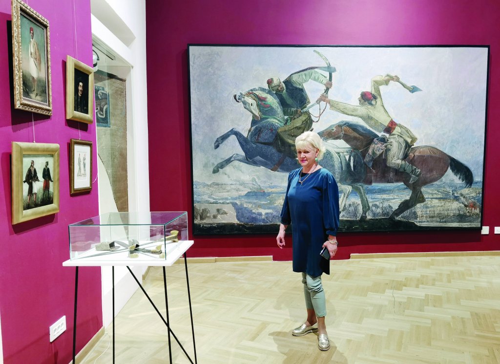 Direktorka Dušica Bojić ispred platna "paljenje hanova" Đurđa Teodorovića