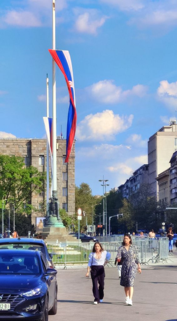 DAN ŽALOSTI U BEOGRADU: Zastave na pola koplja (FOTO)