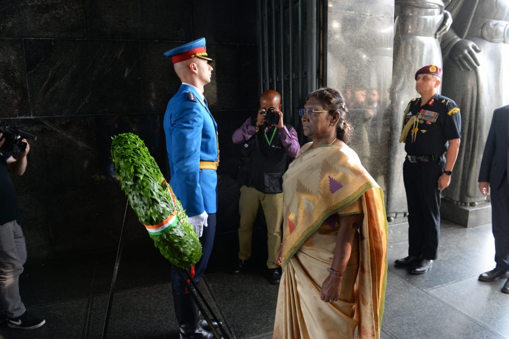 "ZAUVEK ĆE OSTATI UPAMĆENI" Predsednica Indije položila venac na Spomenik neznanom junaku na Avali (FOTO)
