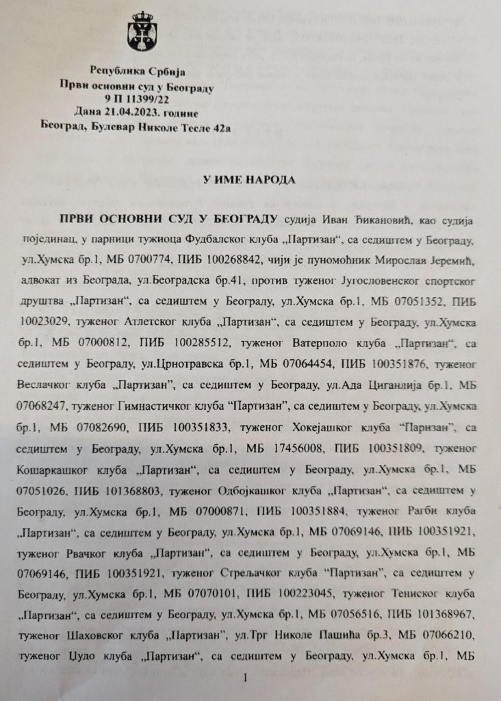 SUD DONEO PRESUDU: Evo šta piše u odluci za predsednika JSD Partizan (FOTO)