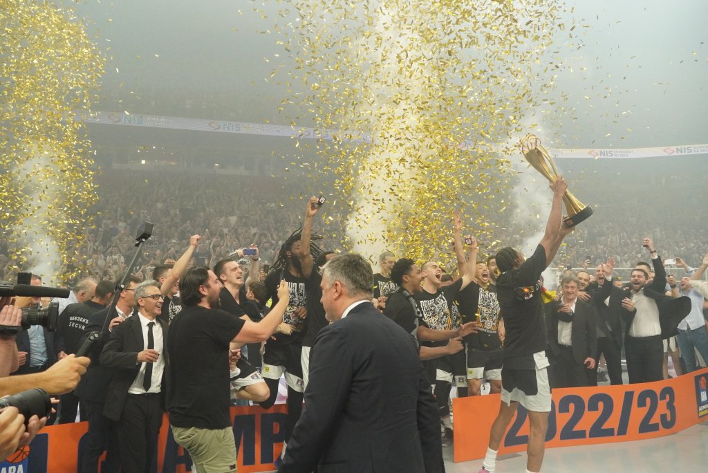 ŠAMPIONSKO SLAVLjE PARTIZANA: Kevin Panter podigao trofej namenjen pobedniku ABA lige (FOTO)