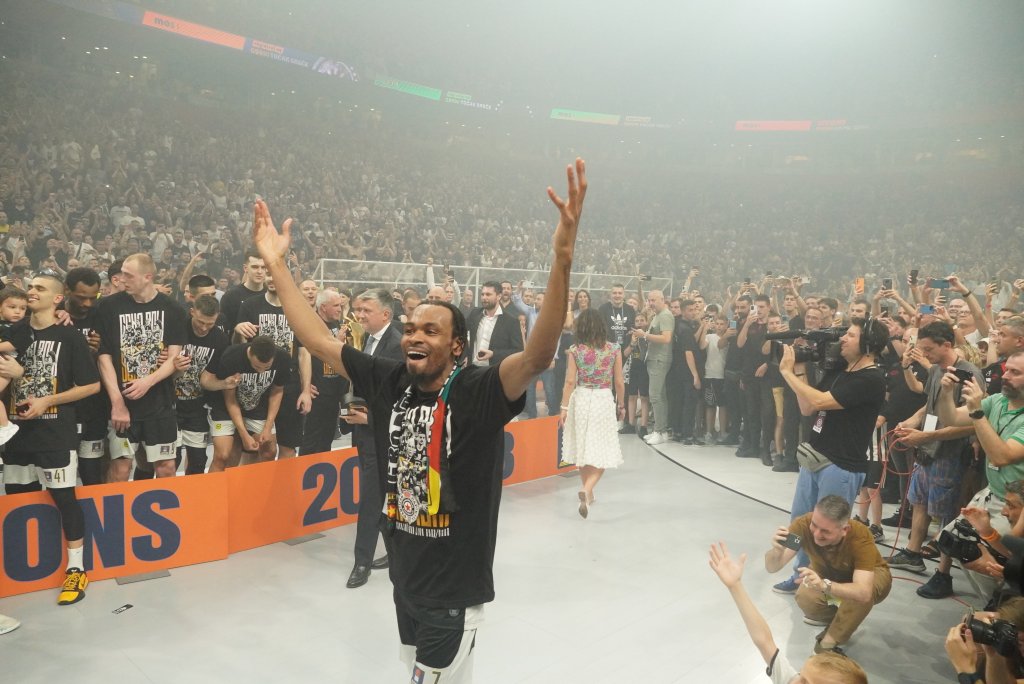 ŠAMPIONSKO SLAVLjE PARTIZANA: Kevin Panter podigao trofej namenjen pobedniku ABA lige (FOTO)