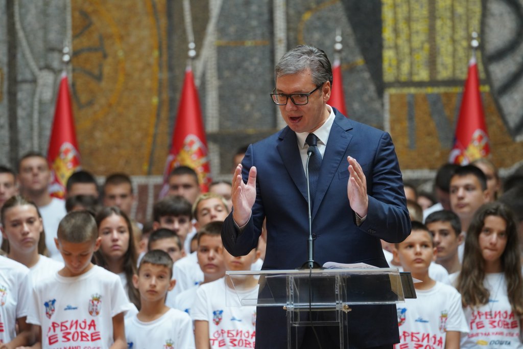 DRES I ZASTAVA ZA PREDSEDNIKA: Učesnici kampa "Srbija te zove 2023" uručili poklone Vučiću (FOTO)