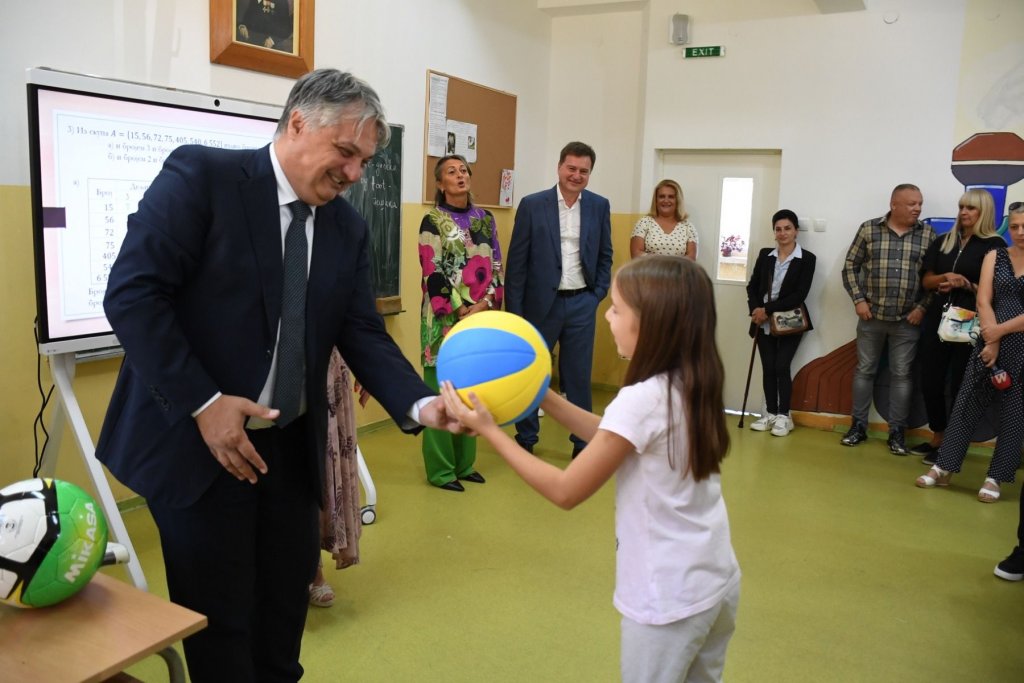 NA INICIJATIVU PREDSEDNIKA VUČIĆA: Direktor "Telekoma" Vladimir Lučić osnovcima u Leposaviću uručio pametnu tablu i lopte (FOTO)