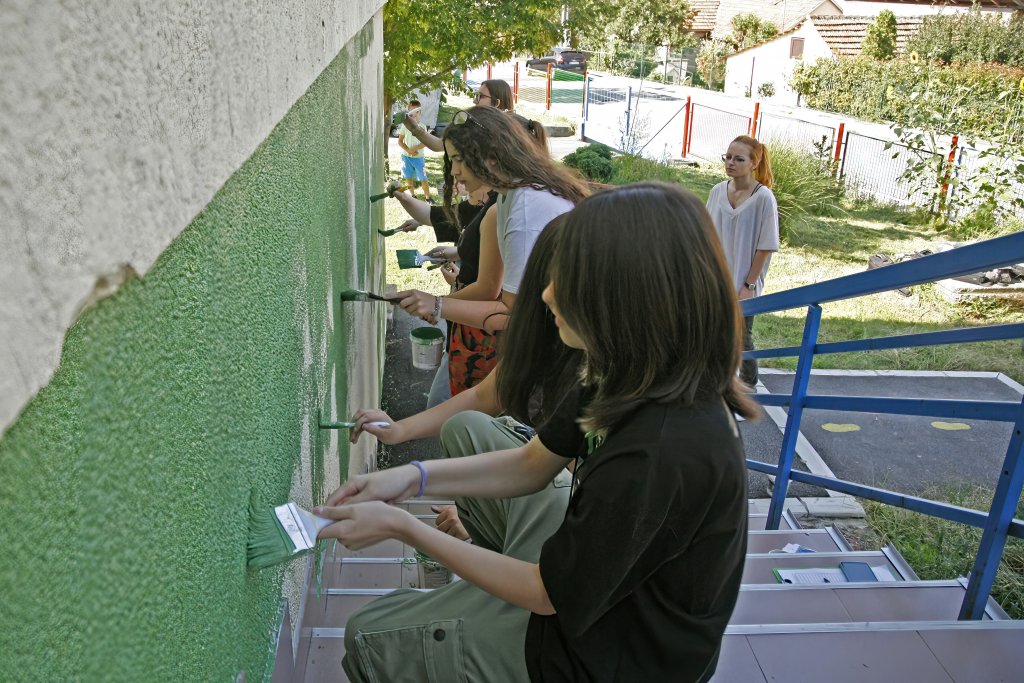 ULAZ KROZ POLjE SUNCOKRETA: Đaci škole "Tehnoart" oslikali mural na ulazu u vrtić (FOTO)