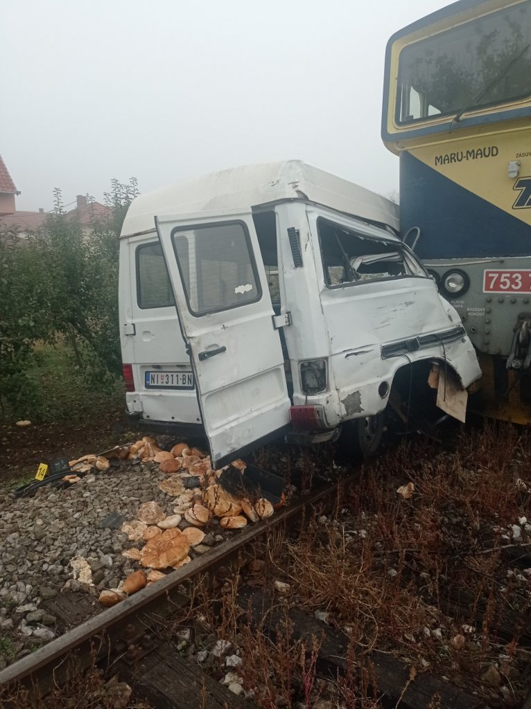 TEŽAK UDES KOD DOLjEVCA: Sudar voza i kombija, muž i žena prevezeni u UKC Niš (FOTO)