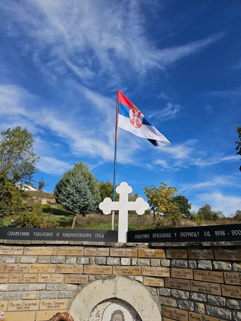 PONOSNO SE VIJORI: Vraćena srpska trobojka na spomenik kod Orahovca (FOTO/VIDEO)