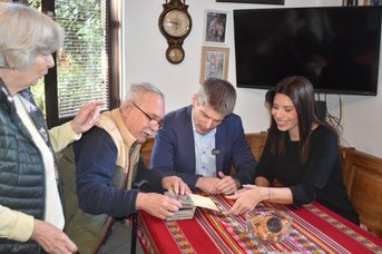 SRBIJA JE DANAS PONOSNA I SAMOUVERENA: Arno Gujon i potpredsednica Glavnog odbora SNS-a Irena Vujović u poseti porodici Pejušković