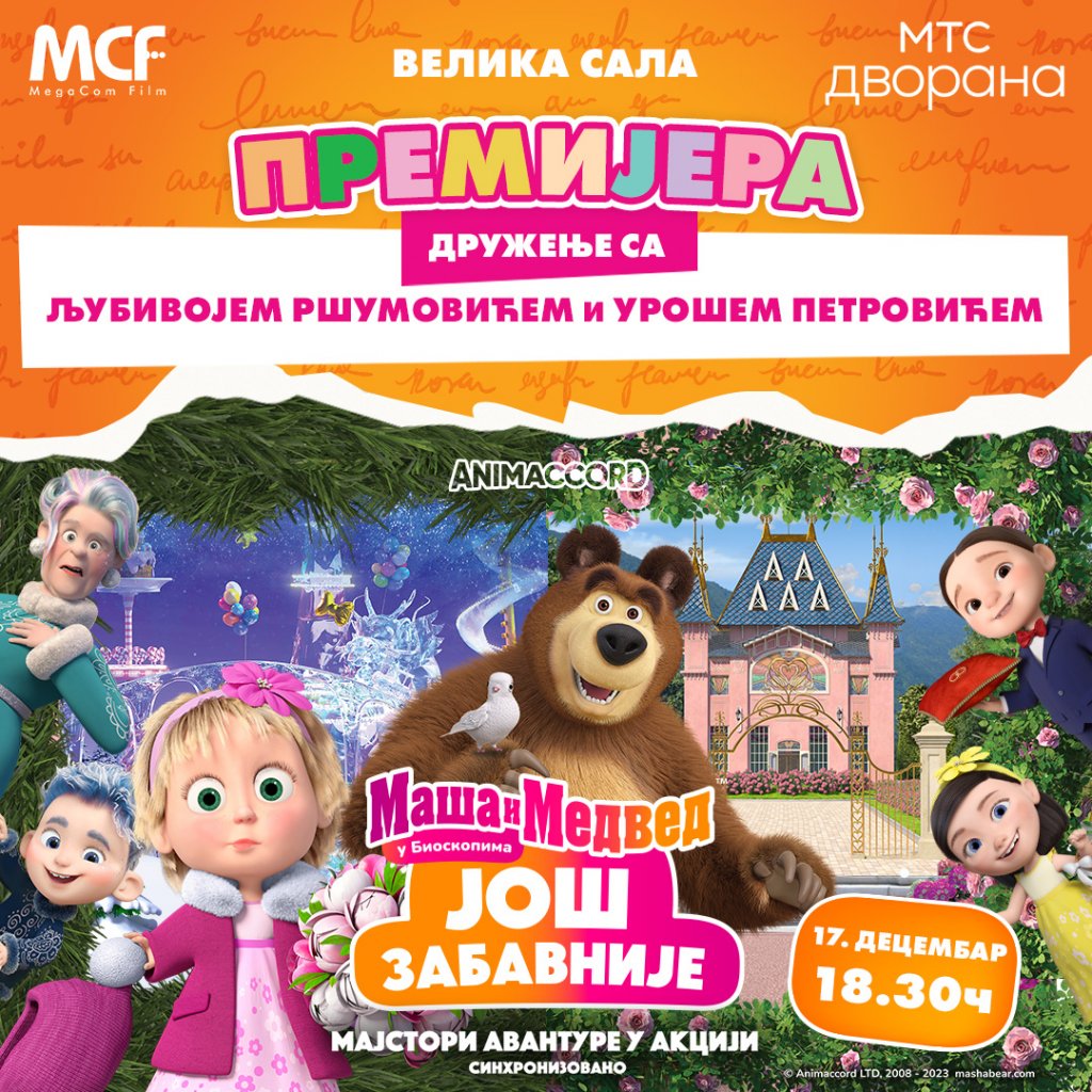 PREMIJERA JEDNE OD NAJOMILjENIJIH ANIMIRANIH PRIČA „MAŠA I MEDVED: JOŠ ZABAVNIJE“ 17. decembra u MTS dvorani