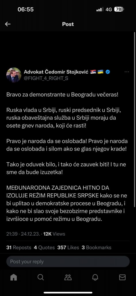 UKRAJINSKI LOBISTA UZ ONE KOJI BI DA RUŠE SRBIJU: Čedomir Stojković poziva na silu - Raduje se nasilju u Beogradu