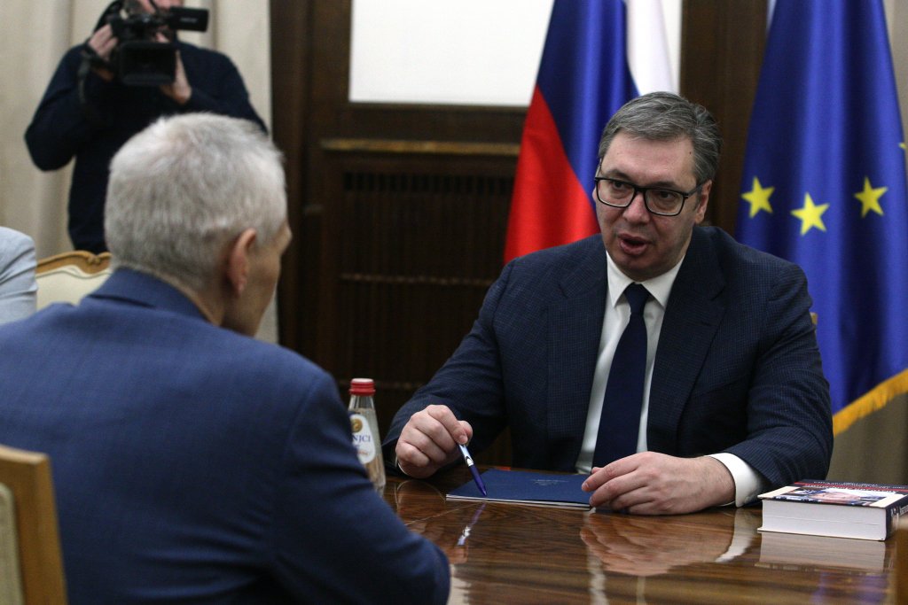 U TOKU SASTANAK U PREDSEDNIŠTVU: Ruski ambasador poklonio Vučiću knjigu „Strogo poverljivo“ (FOTO)