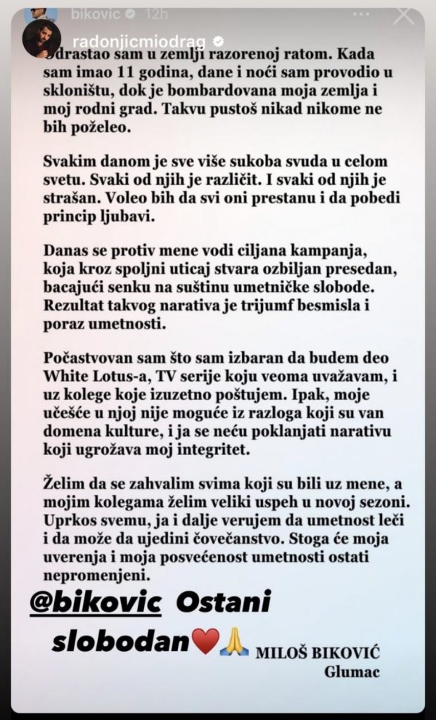 "OSTANI SLOBODAN!" Velike reči kolega - Stali snažno uz Bikovića nakon izbacivanja iz serije (FOTO)