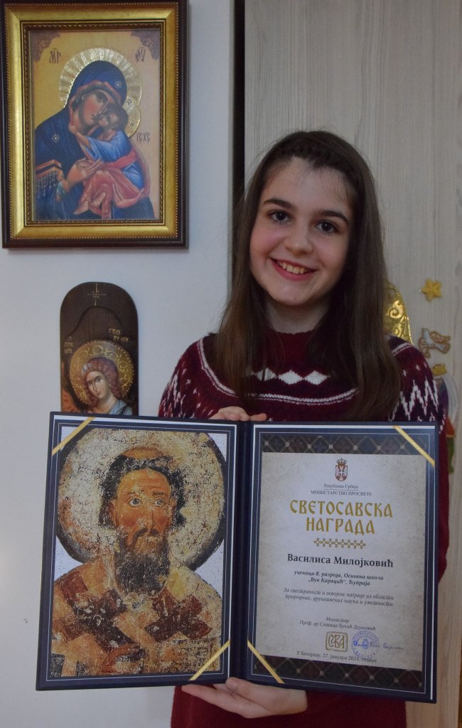 ZNANjE OLAKŠAVA ŠKOLOVANjE: Vasilisa Milojković, učenica iz Ćuprija, dobitnica Svetosavske nagrade (FOTO)