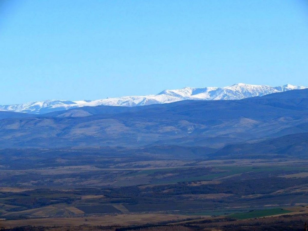 Snežni vrhovi planine Semenik u Rumuniji, uslikani sa vrha Lisičja glava na Vršačkim planinama