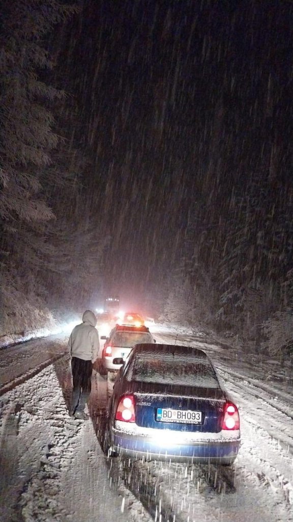 DRAMA NA PUTU BERANE-ROŽAJE: Sneg pada na severu Crne Gore, na Lokvama zavejana vozila (FOTO)
