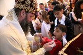 PATRIJARH PORFIRIJE KRSTIO DESETINE MALIŠANA U RIPNjU: Arhijerejsku Liturgiju služio na praznik Cveti uz sasluženje Episkopa Ilariona (FOTO)