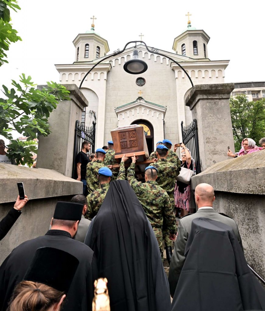 U SUSRET SPASOVDANSKOJ LITIJI I PRAZNIKU VAZNESENjA GOSPODNjEG: Mošti Svetog Justina Ćelijskog stigle u Beograd (FOTO/VIDEO)