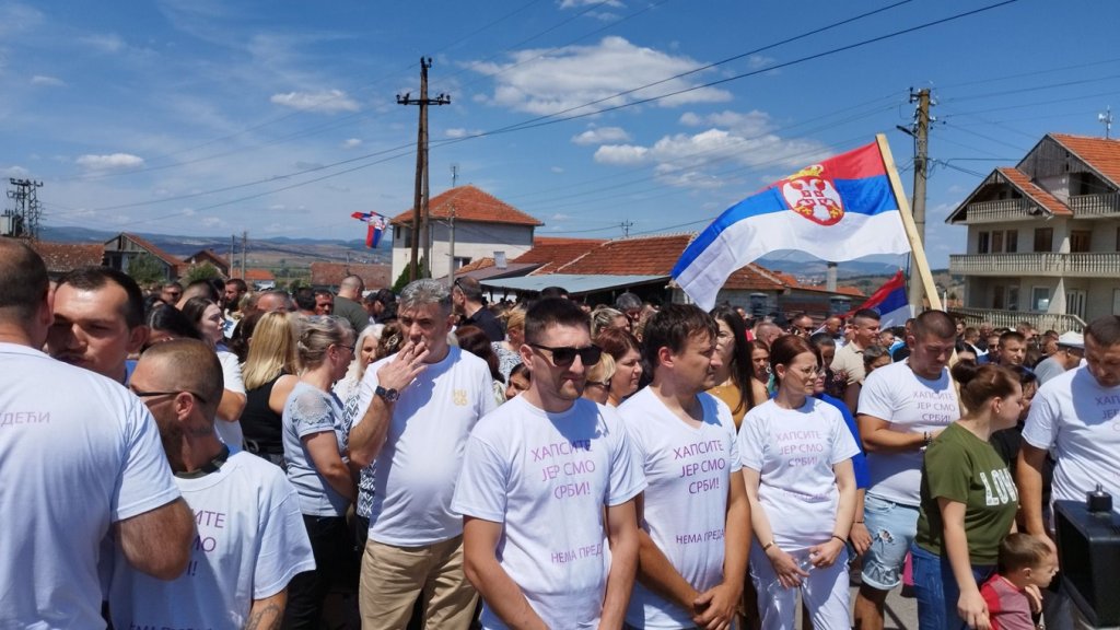 "KURTI, PUSTI MI DEDU, MOJ DEDA NIJE UBICA" Potresna slika iz Pasjana - Tužna poruka na transparentu unuka uhapšenog Dragana (FOTO)