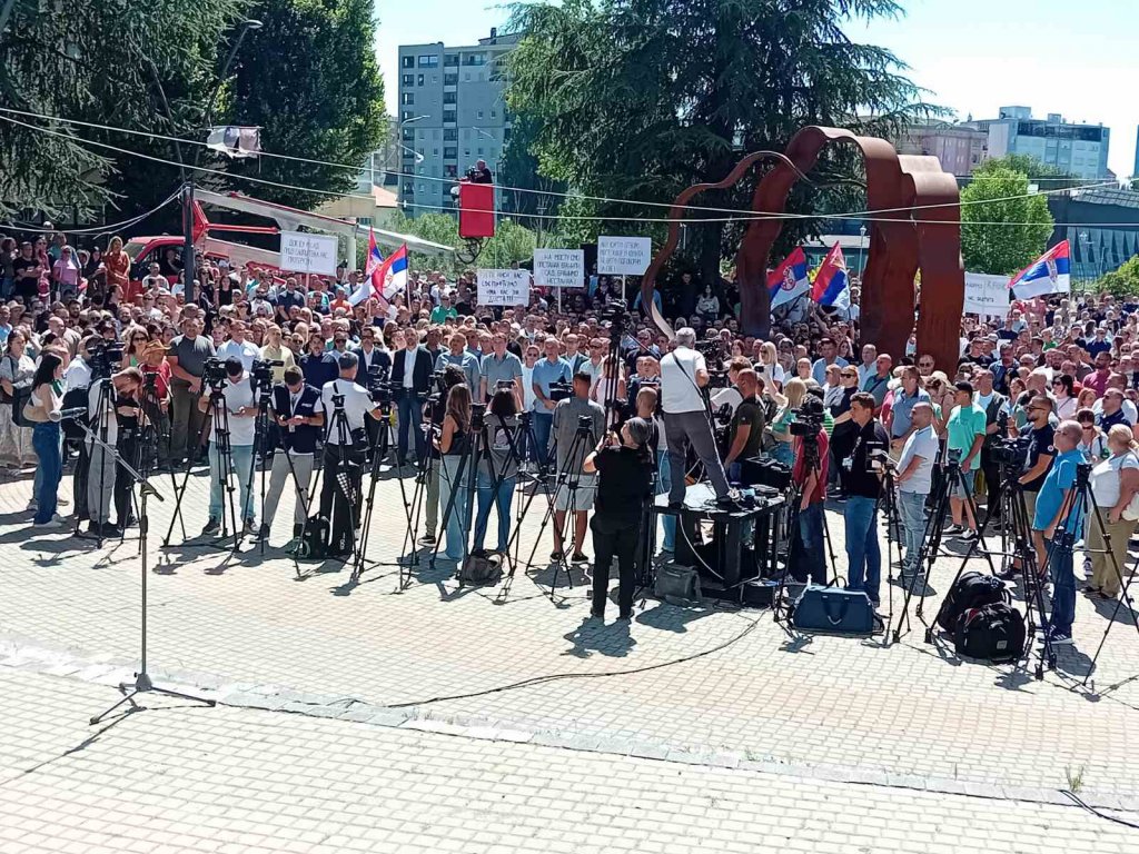 VIŠE OD HILjADU SRBA OKUPILO SE NA PROTESTU U MITROVICI: Traže od međunarodne zajednice da ne dozvoli otvaranje glavnog mosta (VIDEO)
