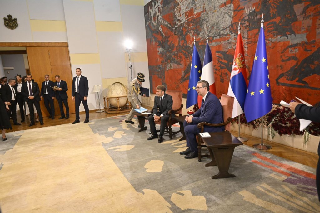 OBRAĆANjE DVOJICE PREDSEDNIKA: Vučić - Potpisan ugovor o nabavci 12 "rafala"; Makron - Srbiji je mesto u EU (FOTO/VIDEO)