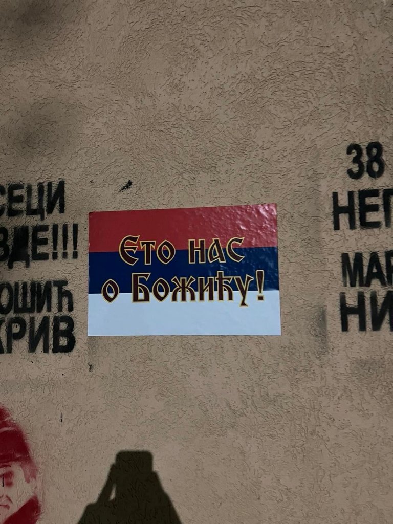 SRPSKA TROBOJKA I PORUKA „ETO NAS O BOŽIĆU“: Sever KiM oblepljen plakatima (FOTO/VIDEO)