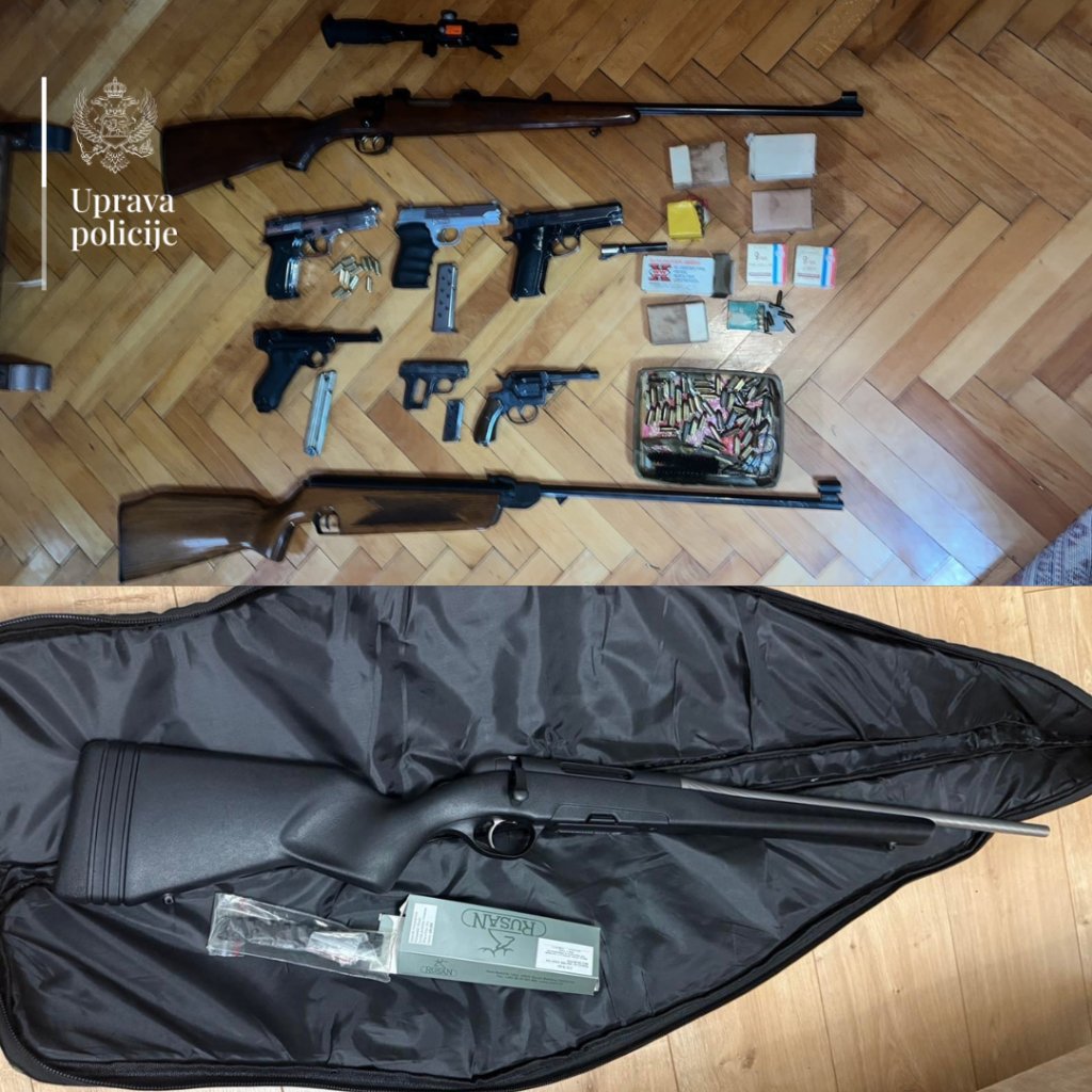POLICIJSKA AKCIJA U PODGORICI I DANILOVGRADU:Uhapšene dve osobe, oduzeto šest pištolja, tri puške, revolver, municija...