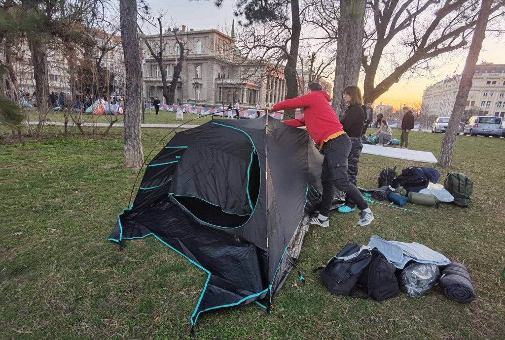 PRVI SNIMAK STUDENATA ISPRED PREDSEDNIŠTVA: Postavljaju šatore, planiraju da tu provedu celu noć - oni žele da uče (VIDEO)