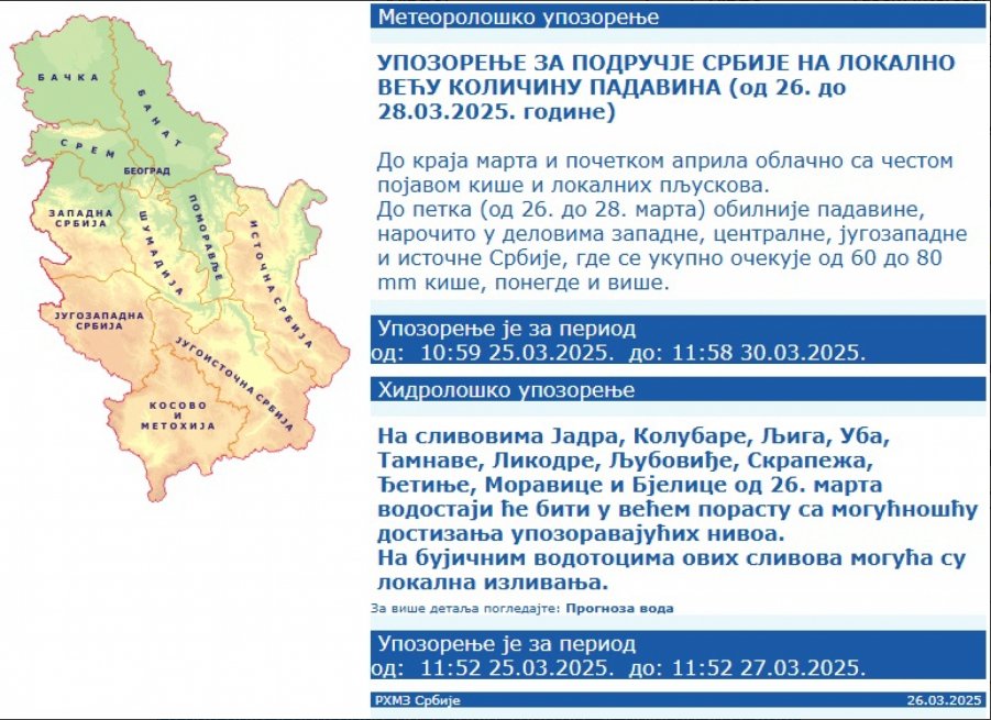 RHMZ IZDAO UPOZORENjE: Obilne padavine u Beogradu i širom Srbije, meteoalarmi su upaljeni