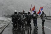 OVO MOGU SAMO SRBI S KiM KOJI SU PEŠKE KRENULI ZA BEOGRAD: Dok sneg veje oni ne ispuštaju zastavu Srbije (FOTO)