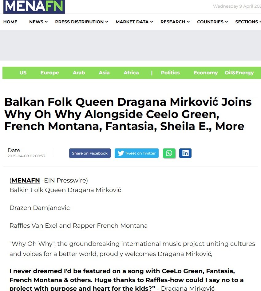 SVETSKI MEDIJI "BRUJE" O DRAGANI MIRKOVIĆ: Folk diva rame uz rame sa planetarim zvezdama (FOTO)
