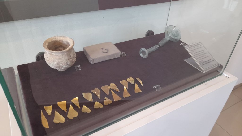 Predmeti pronađeni u jednom od grobova među kojima su i zlatni listići sa dijademe