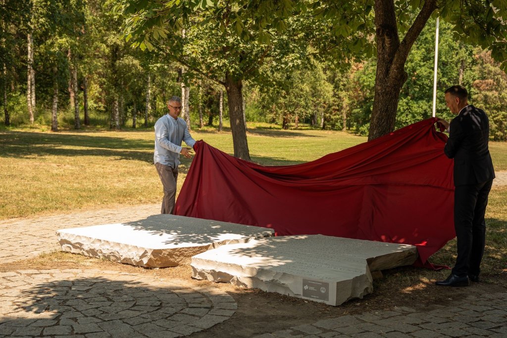 SPOMEN-PLOČA SA TEKSTOM DOBRICE ĆOSIĆA POLOŽENA DANAS NA SLOBODIŠTU U KRUŠEVCU: U znak sećanja na preko 700 streljanih Srba, Jevreja i Roma