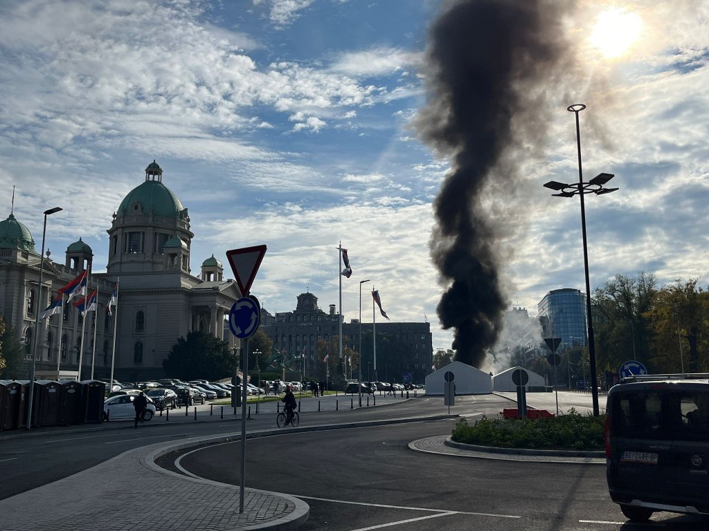 POŽAR ISPRED SKUPŠTINE SRBIJE LOKALIZOVAN: Goreo šator (FOTO)