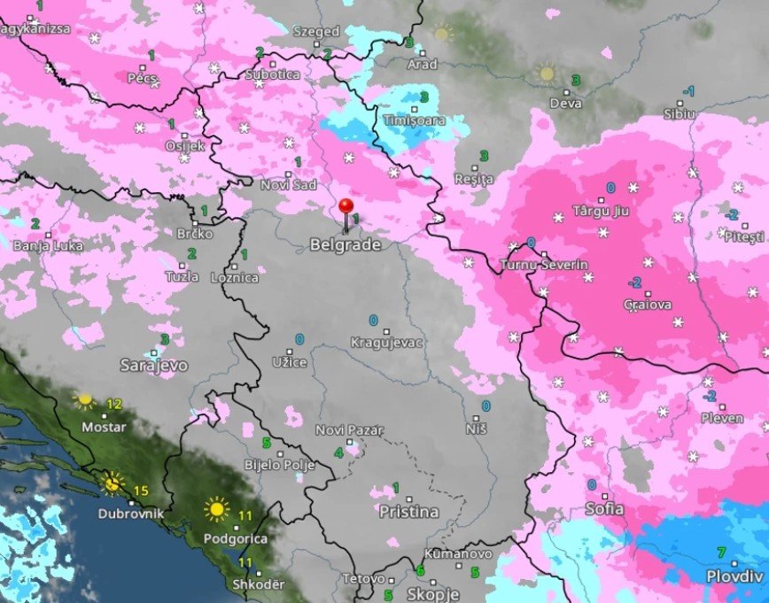 (RADARSKI SNIMCI) BEOGRAD NA UDAR VREMENSKIH NEPOGODA: Pogledajte kako će se hladne mase stapati u jednu i gde će padati 48 sati (FOTO)