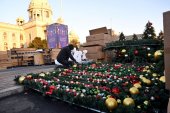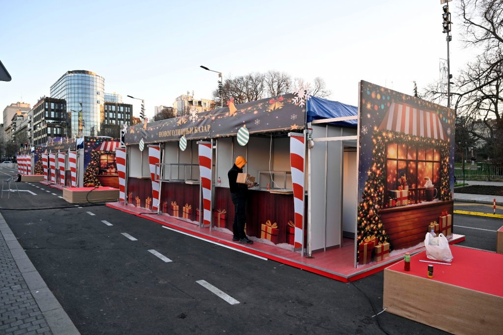 ŠATORE ISPRED NARODNE SKUPŠTINE ZAMENILI UKRASNI ŠTANDOVI I JELKE: Postavljeno Božićno selo, kako je najavio predsednik Vučić