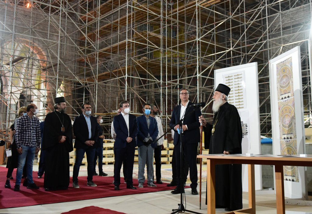 LIČNI POKLON PATRIJARHA IRINEJA: Predsednik dobio ikonu Svetog Save i posebnu rakiju iz Župe