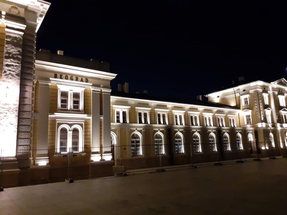 STARA ŽELEZNIČKA STANICA ZABLISTALA U PUNOM SJAJU: Obnovljena fasada još lepša pod svetlima nove rasvete (FOTO)