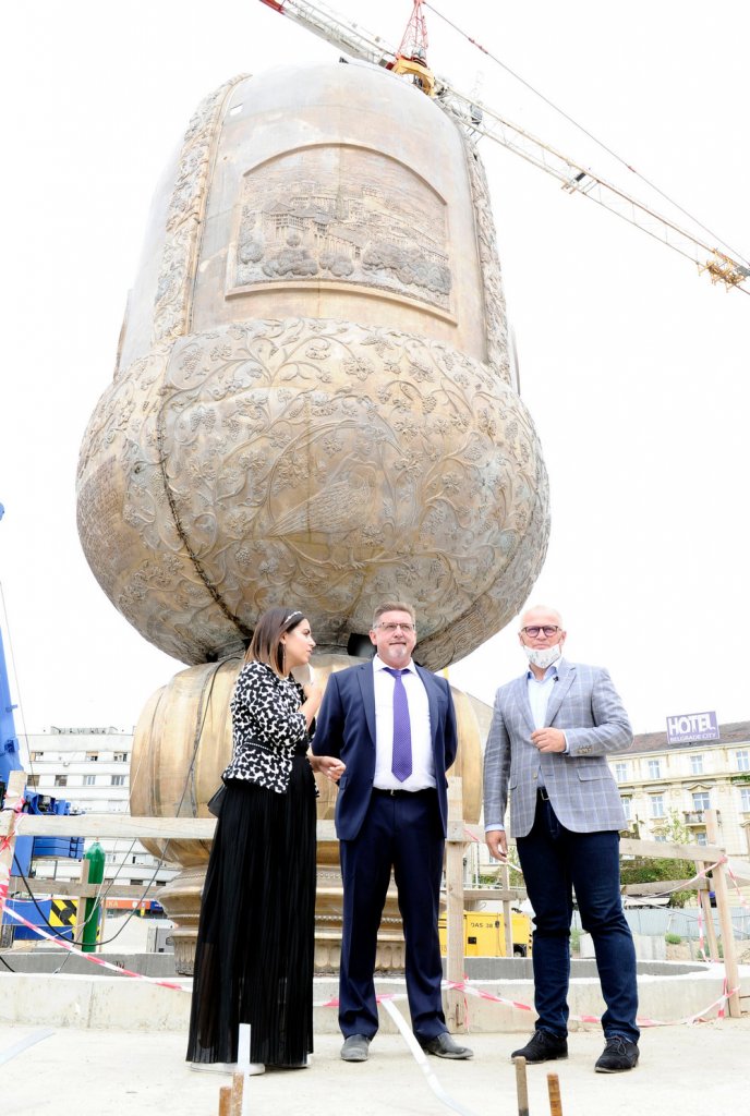 MONTIRAJU VIZANTIJSKI ŠLEM: Počela druga faza postavljanja spomenika Stefanu Nemanji na Savskom trgu (FOTO)
