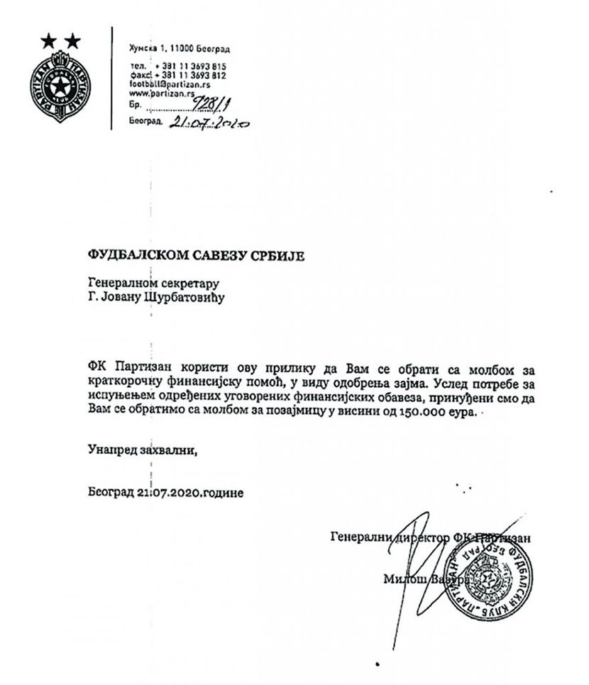 FSS OBJAVIO DOKUMENT O POZAJMICAMA PARTIZANU: Koliko klub iz Humske duguje Savezu (FOTO)