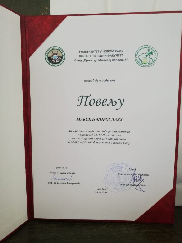 DIPLOMAC GENERACIJE: Veliki uspeh Lozničanina Miroslava Maksimovića na fakultetu u Novom Sadu