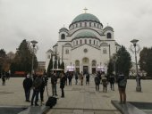 SAOBRAĆAJ OKO HRAMA SVETOG SAVE OBUSTAVLjEN: Na ulasku u hram stoje pripadnici garde Vojske Srbije, a vernici pale sveće