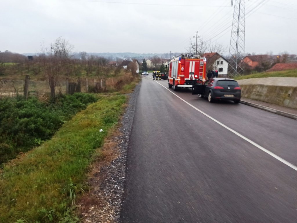 TEŽAK UDES KOD LOZNICE: Automobil se prevrnuo na krov, vozač prebačen u bolnicu (FOTO SA MESTA NESREĆE)