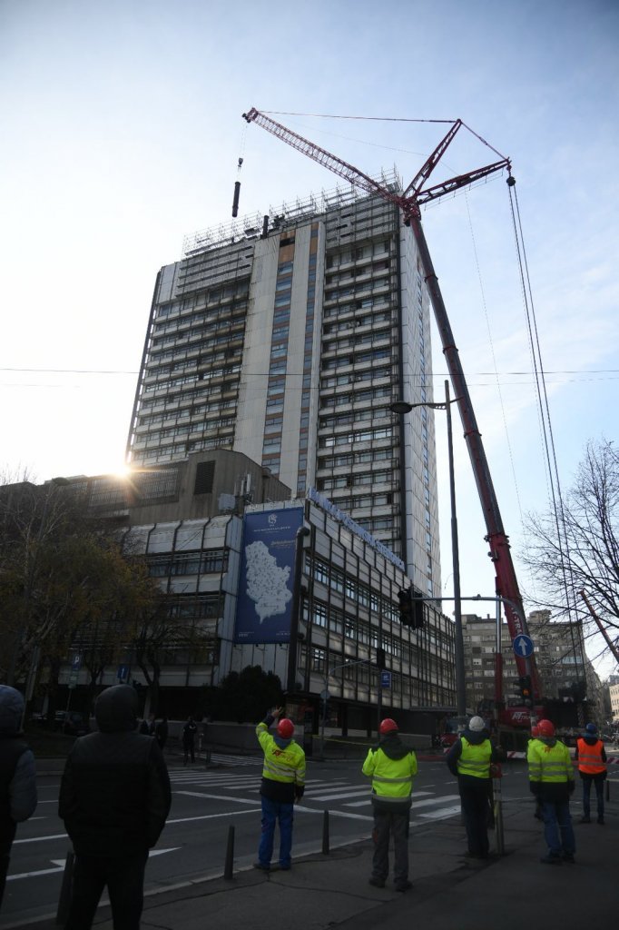 DEMONTAŽA DIMNjAKA TEŠKOG TONU I PO: Izmene u saobraćaju zbog radova na zgradi Gradske uprave u Kraljice Marije (FOTO/VIDEO)