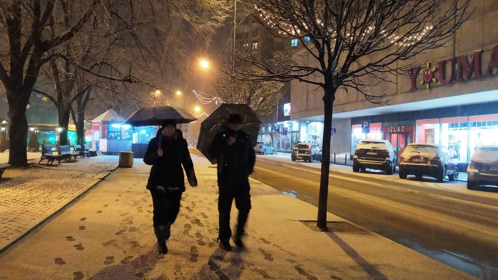 SNEŽNA LEPOTA U PARAĆINU: Samo dvoje mališana večeras na glavnom trgu (FOTO)