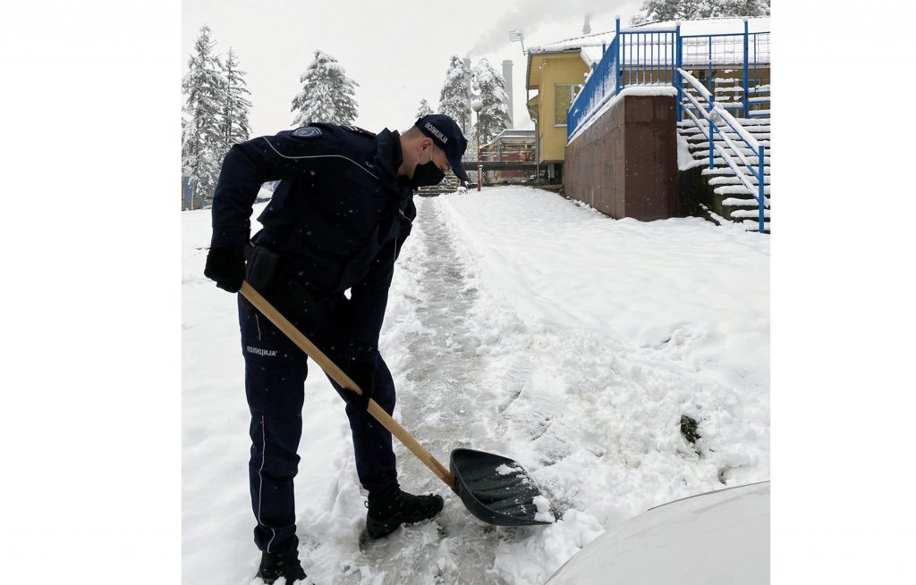 POLICIJA POMAŽE GRAĐANIMA: Pripadnici MUP u Beogradu samoinicijativno se organizovali da očiste sneg (FOTO)