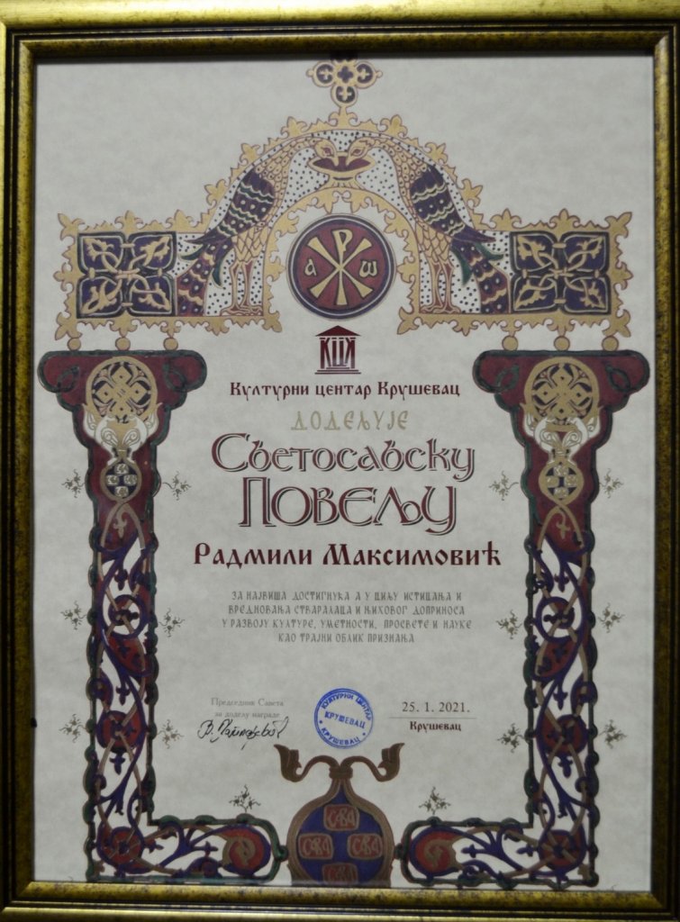 ZNANjE JE NAJVEĆA MOĆ: Održana Svetosavska akademija u Kruševačkom pozorištu, uručena nagrada Radmili Maksimović (FOTO)